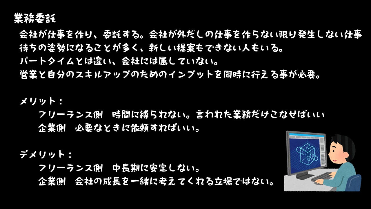 正社員、パートタイム、フリーランスへの業務委託などには、それぞれ会社側、働く側にとってメリット・デメリットがあります。