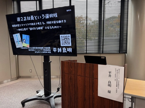 2025年11月13日、福岡県飯塚市の 福岡ソフトウェアセンター にて、 飯塚地域雇用創造協議会主催の「人と組織が輝く職場づくりセミナー(A-4)」の第1回として、 平井良明(株式会社イーハイブ代表取締役/一般社団法人中小企業事業推進機構 代表理事)が 「多様性活用編:多様性で企業力を高める」をテーマに登壇しました。■ セミナー概要今回のセミナーでは、 短時間勤務・介護や育児との両立・世代や性別を...